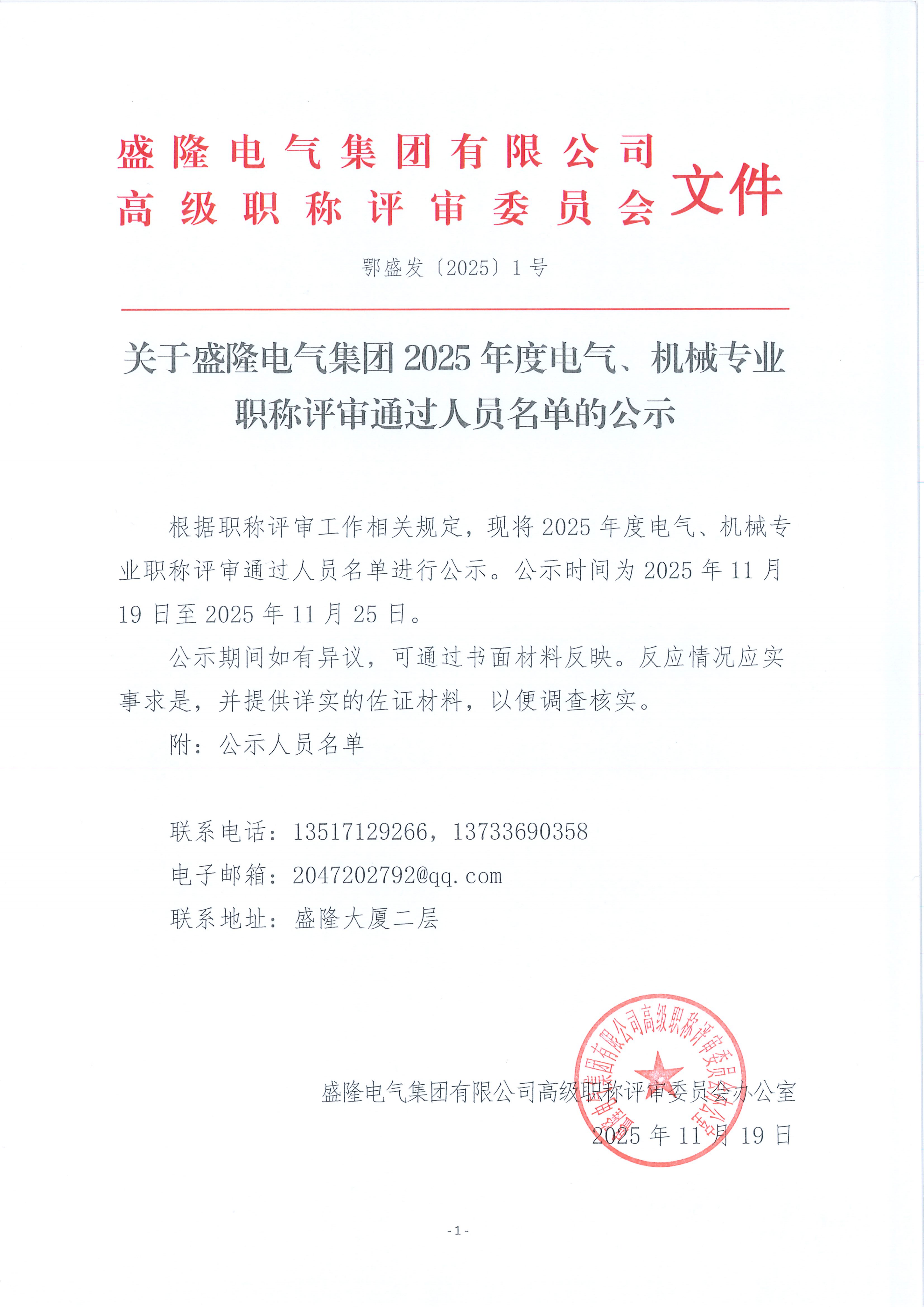 關(guān)于盛隆電氣集團(tuán)2025年度電氣、機械專...